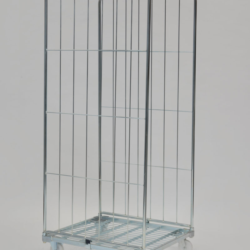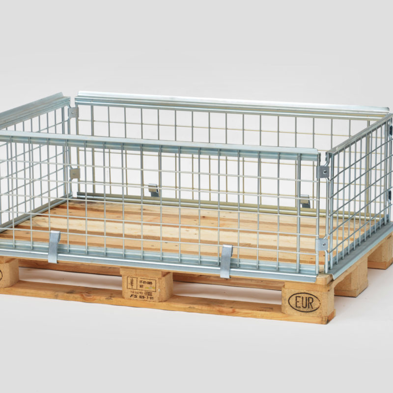 Containers made of metal wire and galvanized steel tubing; they can be folded with the possibility of overlapping them, both when they are open or folded.   All our containers are built following processes that guarantee rigidity and, therefore, durability. They can be used in all sectors: logistics, textiles, plastic molding (PET), automotive, foundries, storage, automated warehouses with picking system, cardboard collection, wine industry, etc.   The containers have a door on the longest side, which facilitates the grab of the goods even when they are overlapped.   Every wall is independent and individually fixed to the base. This results in a greater robustness and facilitates the process of closing and opening of the container.  When folded, the container is only 250 mm tall, which makes it less lumbering and considerably simplifies the transport operations.