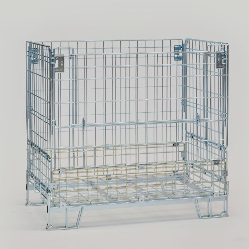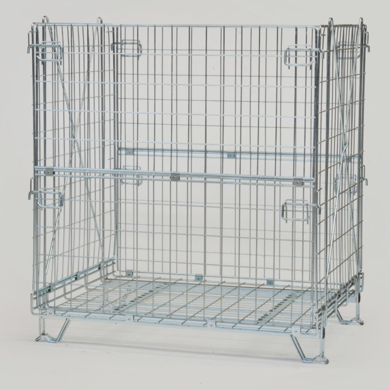 Contenedores de alambre y tubular de acero galvanizado, plegables o fijos, y apilables.  Todos nuestros contenedores se fabrican con procesos que garantizan rigidez y, por lo tanto, duración en el tiempo. Se pueden utilizar en todos los sectores: logístico, textil, moldeo de plástico (PET), automoción, fundición, almacenamiento, almacenes automáticos para el picking, recogida de cartón, enología, etc. Todos tienen una puerta en el lado más largo para facilitar el agarre de los materiales, incluso cuando los contenedores están apilados. Las barras tubulares de acero garantizan una alta rigidez a la torsión, lo cual aumenta considerablemente la duración del contenedor. Cada pared es independiente y está sujetada a la base. Esto determina una mayor robustez y facilita el proceso de apertura y cierre del contenedor. Cuando está cerrado, el contenedor mide solamente 250 mm en altura, causando menores estorbos, lo que produce notables ventajas durante las fases de transporte.
